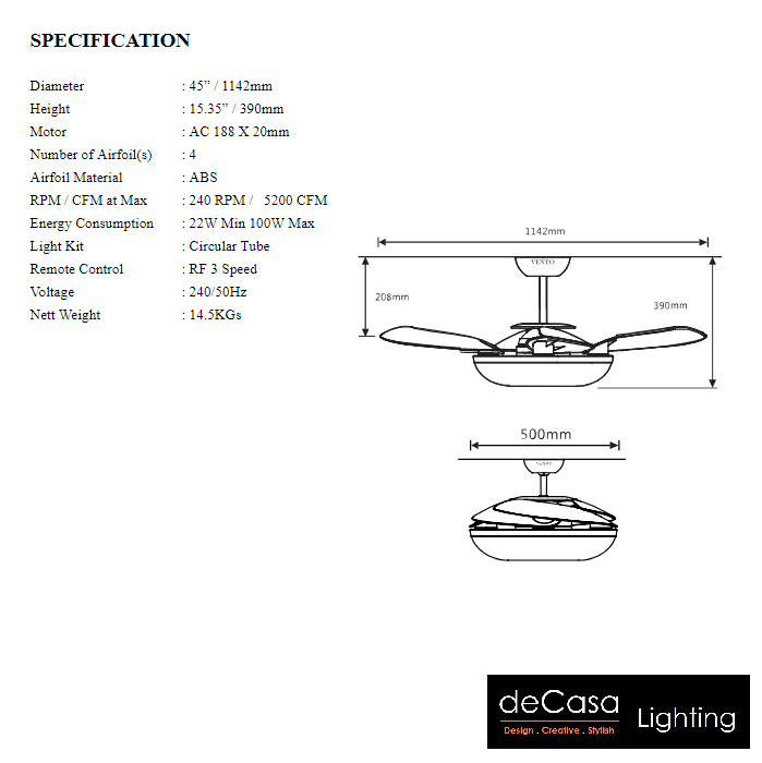 • All pictures shown are for illustration purpose only. Actual product may vary due to product enhancement. Specification subject to +/-5% variation due to manual measurement.